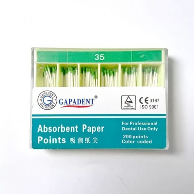 • Штифты бумажные абсорбирующие эндоканальные Gapadent предназначены для быстрого высушивания корневого канала.